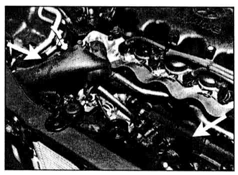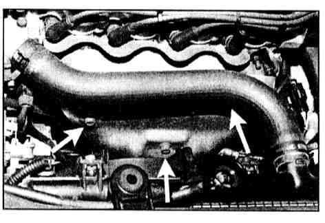5. Lower the vehicle. Remove the plastic air intake plenum by removing two bolts (M6).