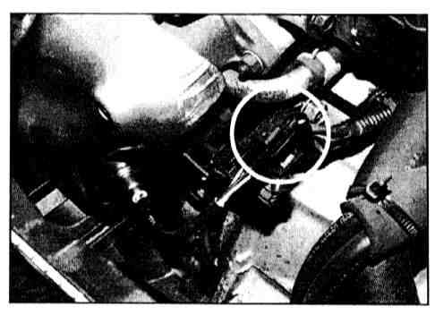 7. Disconnect the wiring for the passenger side radiator fan unit. Remove the passenger side fan unit by removing the two upper bolts (M6) and loosening (do not remove all the way) the two lower bolts (M6).