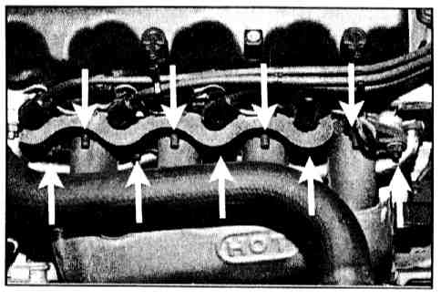 10. Remove the nine (M6) nuts holding the exhaust manifold to the cylinder head.