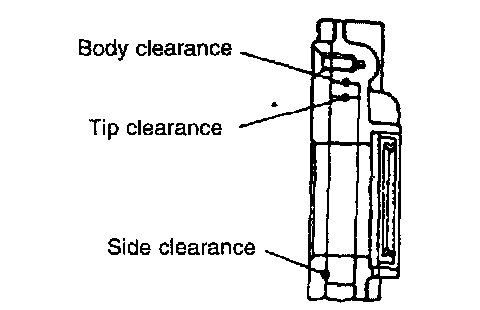 Outer gear clearance between outer circumference and front case 0.12-0.18mm (0.005-0.007 inch).