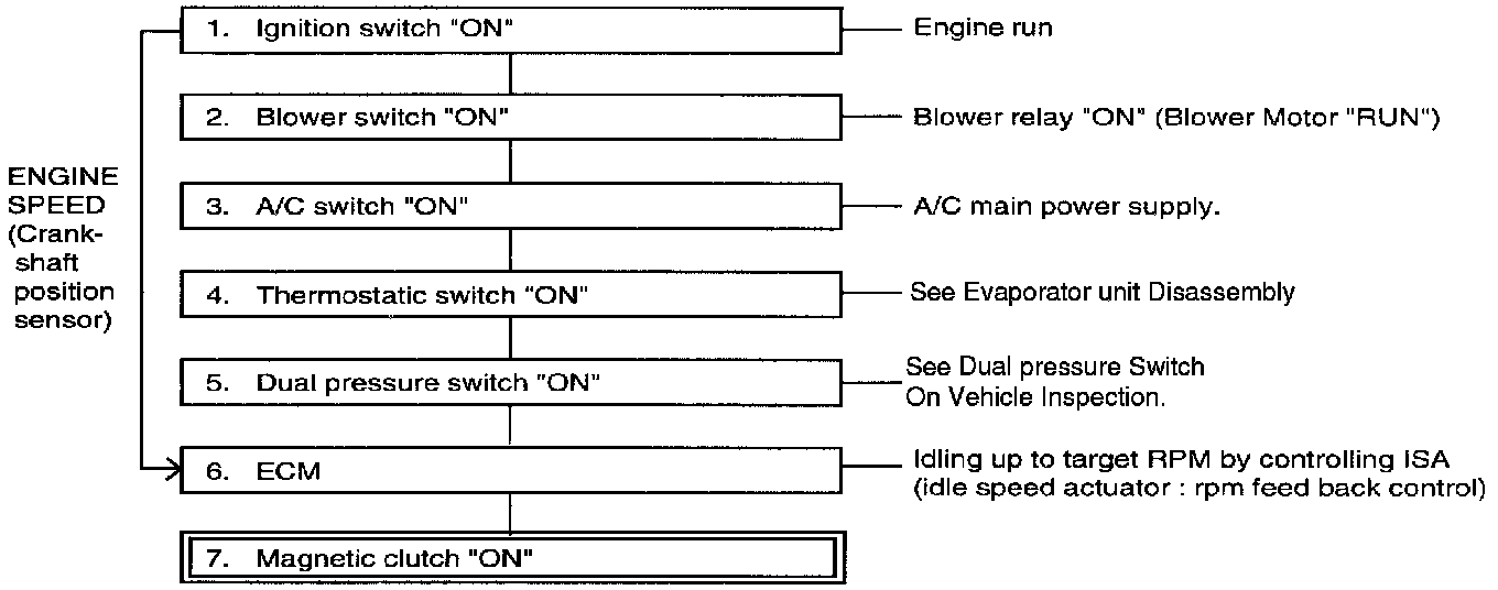 The general process how the magnetic clutch is energized is shown (MFI only)
