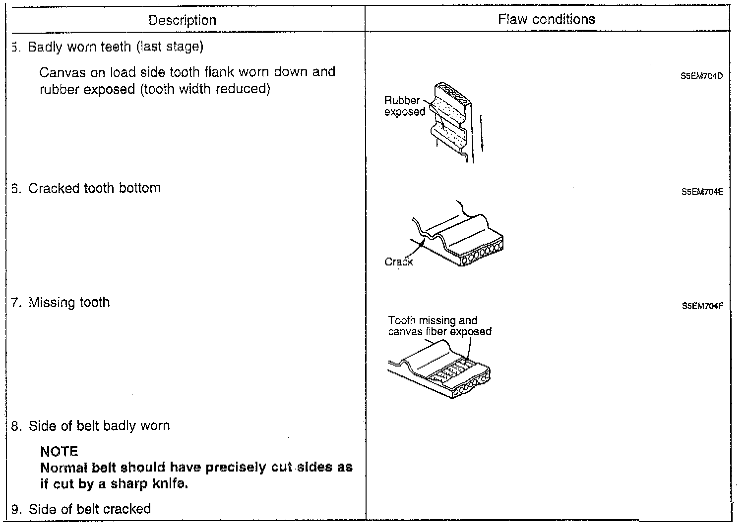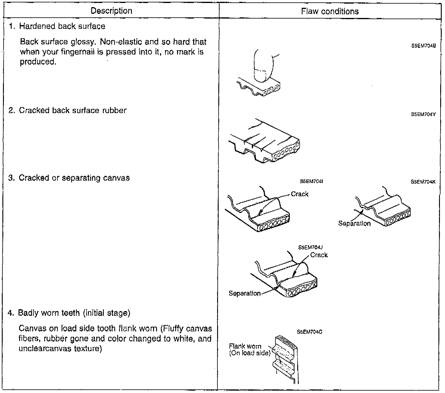 3. If any of the following flaws are evident, replace the belt.