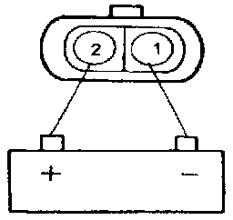 2. Attach the positive (+) lead from the battery to terminal 2, and negative (-) lead to terminal 1.