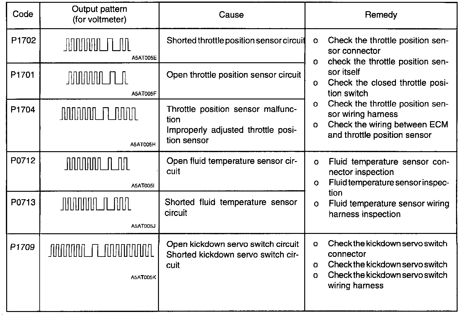 Code P1702 Through P1709: