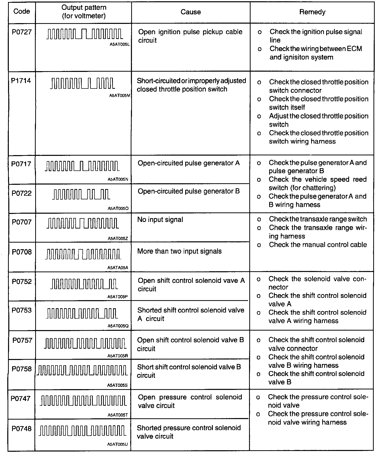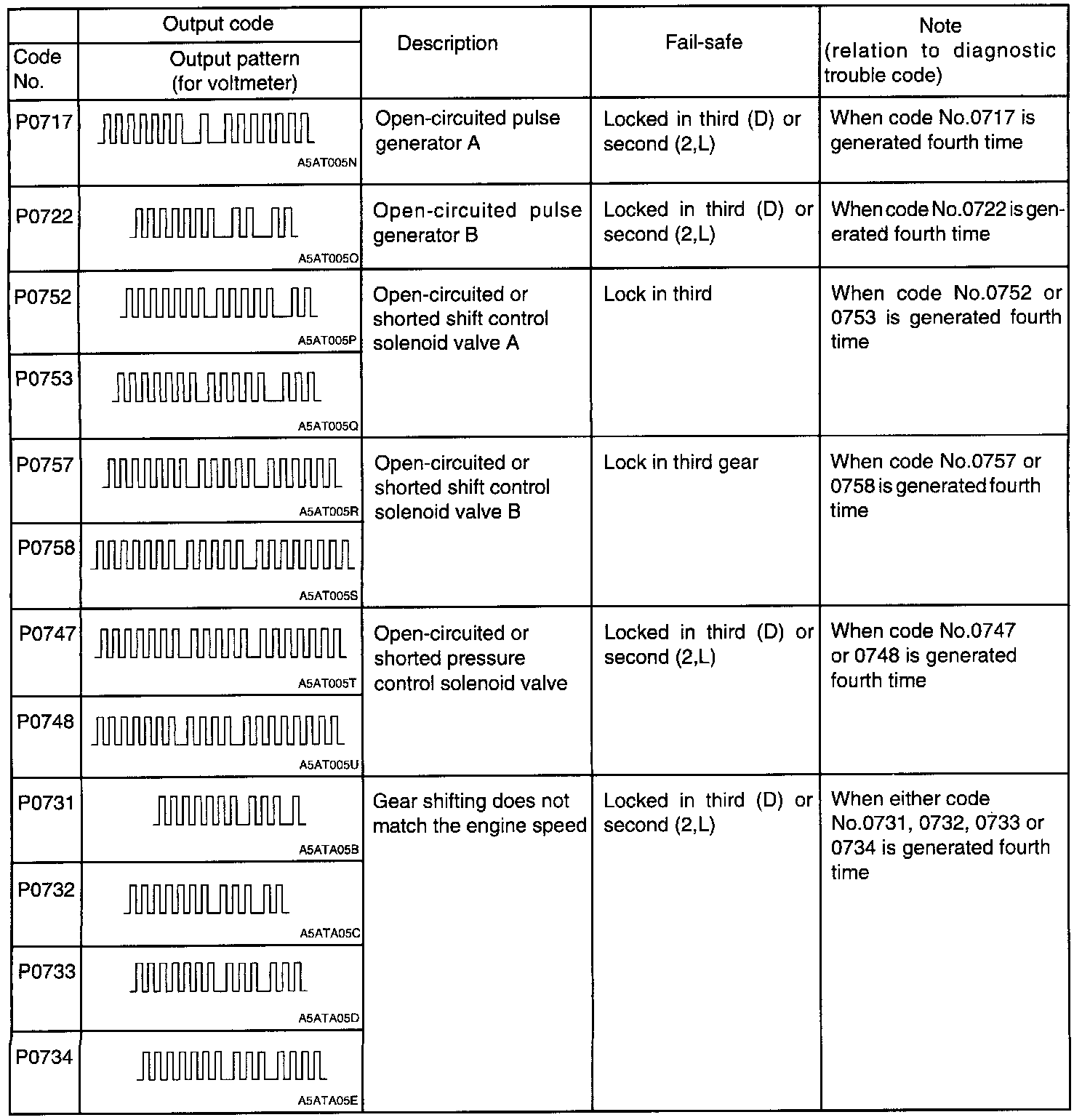 Code P0717 Through P0734: