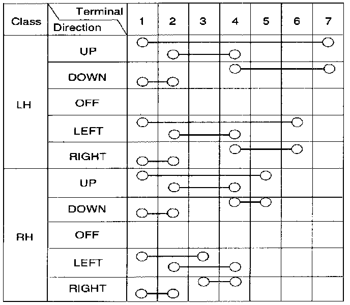 2. Check for continuity between the terminals in each switch position according to the table.