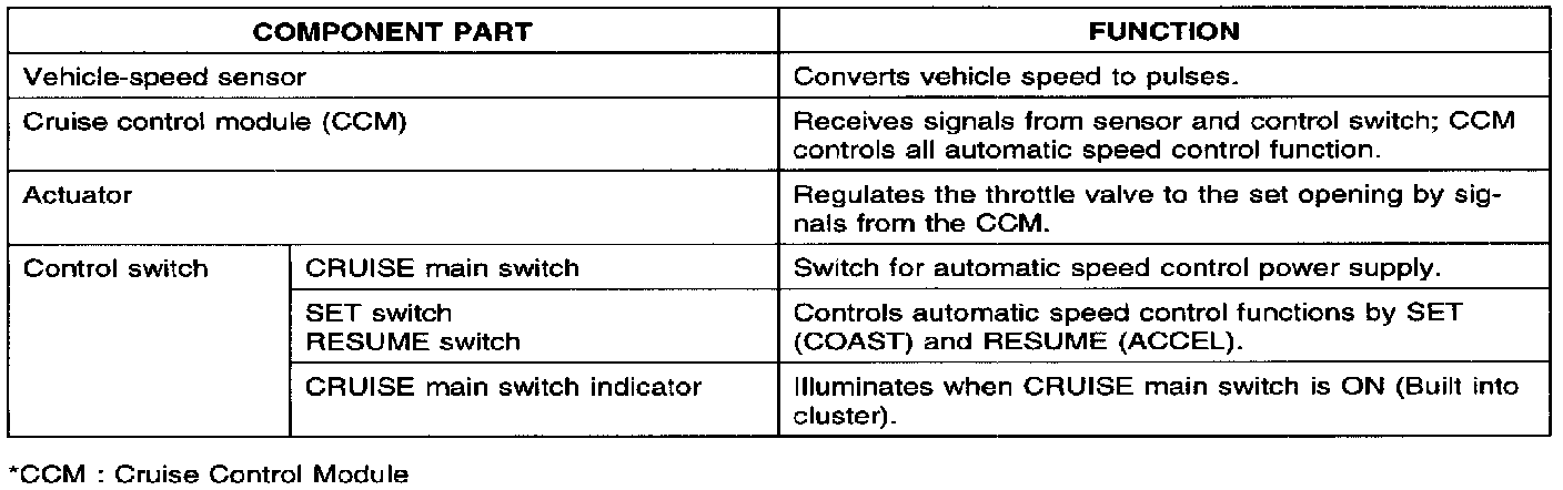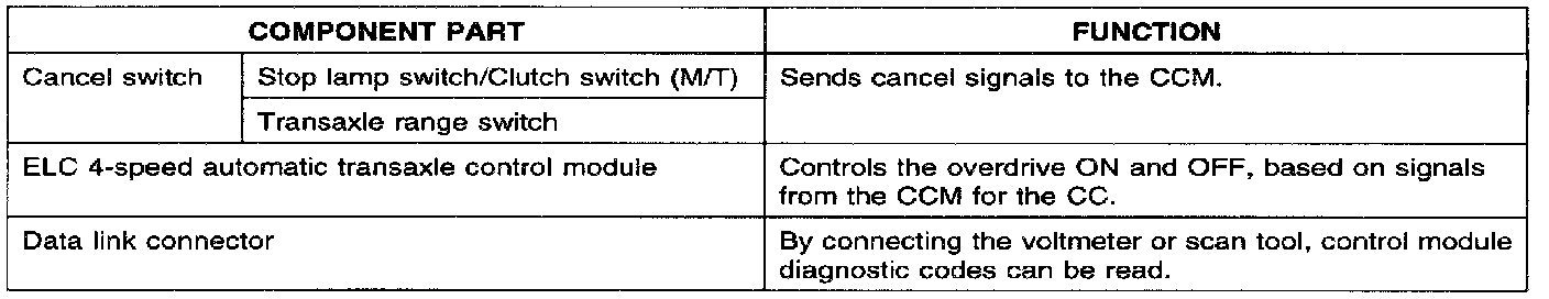 COMPONENT PARTS AND FUNCTION OUTLINE
