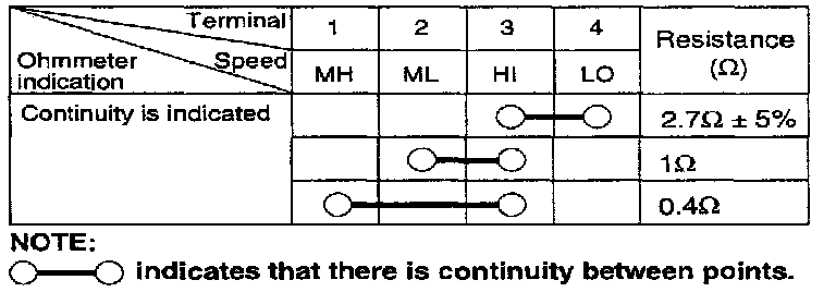 1. Measure terminal-to-terminal resistance of the blower resistor. It measured resistance is not within specification, the blower resistor must be replaced.