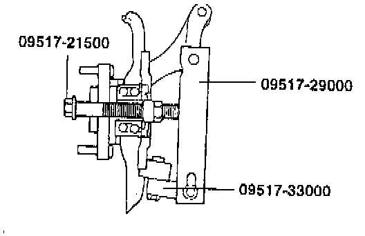 2. Attach the special tools to the knuckle and hub.