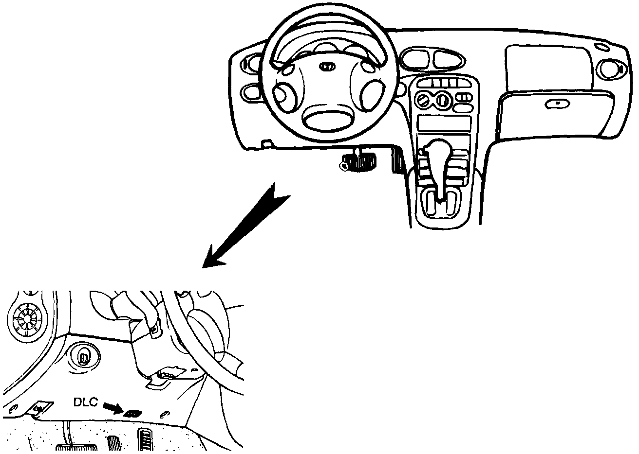 1. Connect the Scan tool DLC to the vehicle data link connector located at underneath the dash panel.