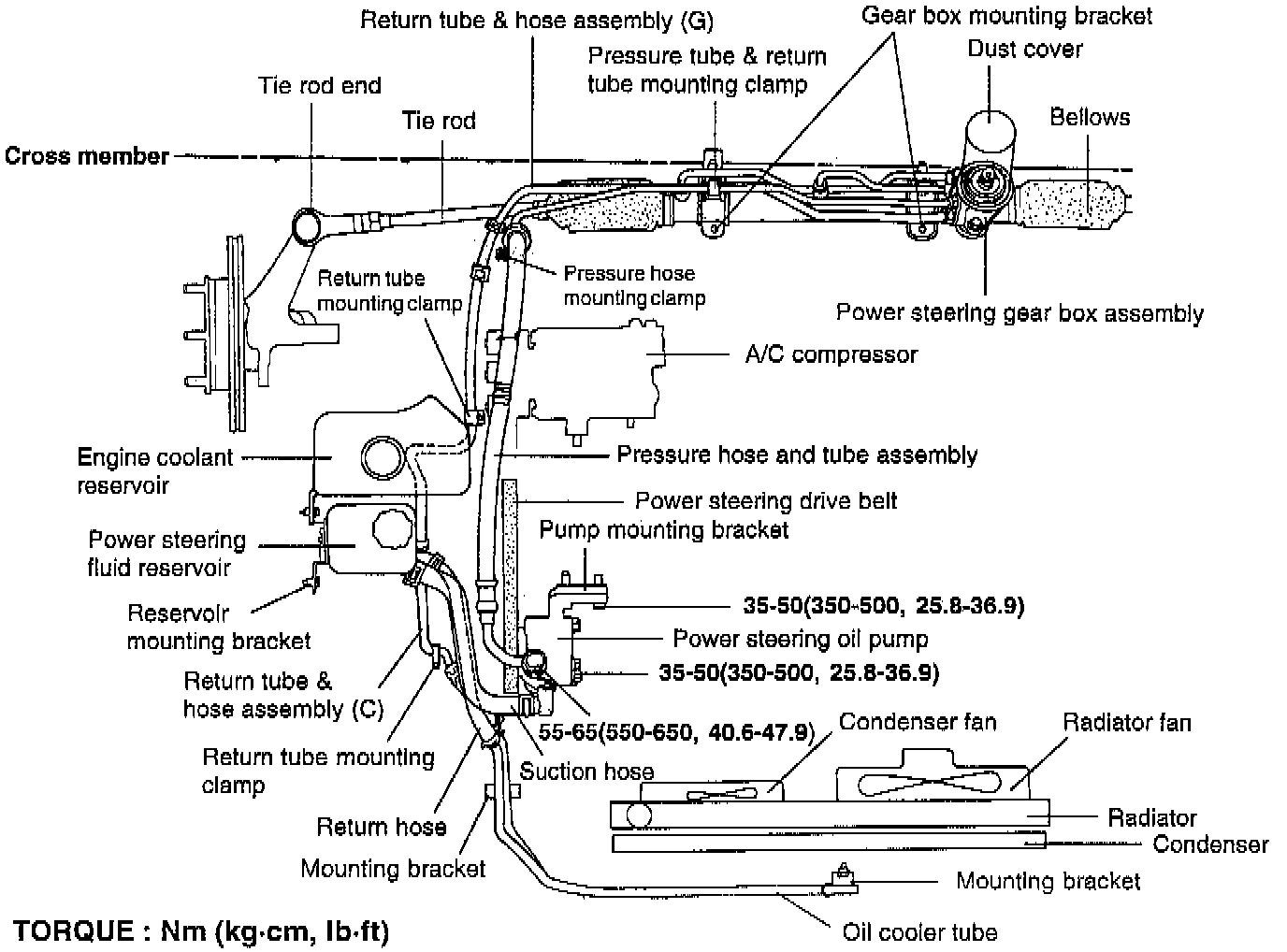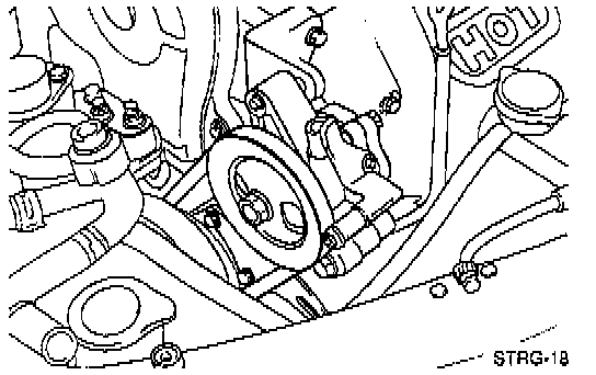 NOTE: Be careful not to drip off fluid from the power steering oil pump.