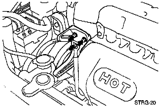 6. Remove the power steering oil pump mounting bolts and the tension adjusting bolt.