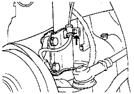 5. Having removed the union between the strut and the knuckle, jack up the lower arm. Attach the brake hose, brake line, front speed sensor wiring harness and drive shaft to the knuckle with wire to prevent them from being damage.