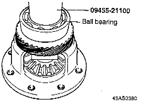 5. Press the bearings onto both ends of differential case. Press on the inner race when installing the bearings. Do not apply load to outer race.