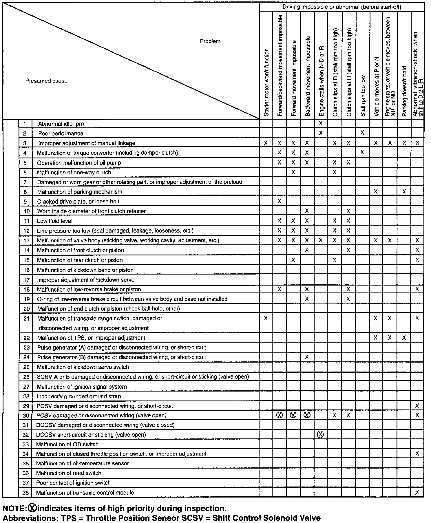 Malfunctions of the auto transaxle can lead to other problems, such as those described below: