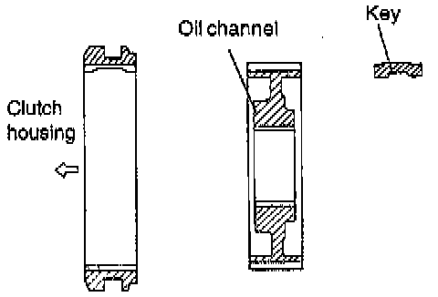 1. Assembly the synchronizer hub, sleeve and key noting their direction.