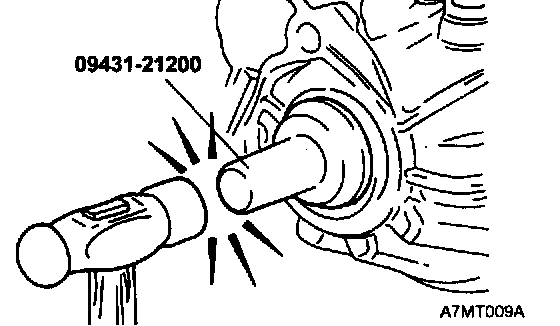 3. Using the special tool (09431-21200) or equivalent, tap the drive shaft oil seal into the transaxle.