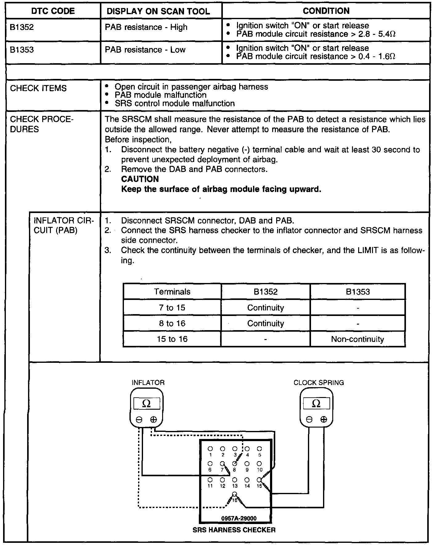 DTC Chart B1352 And B1353:
