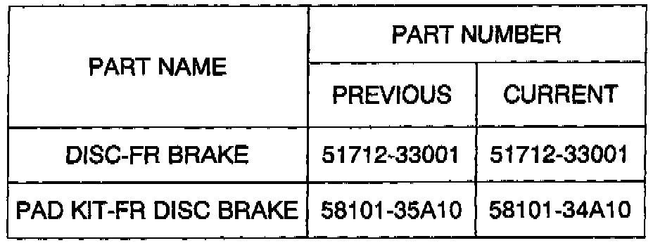 3. Replace brake discs and pads using the parts information:
