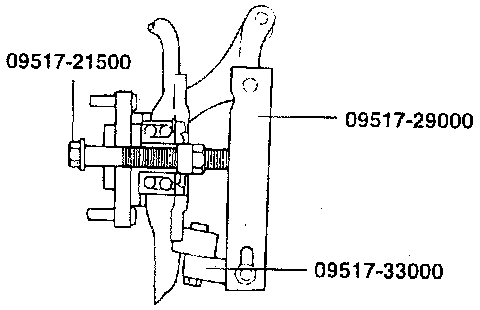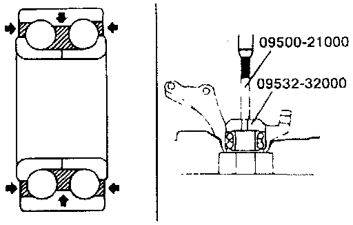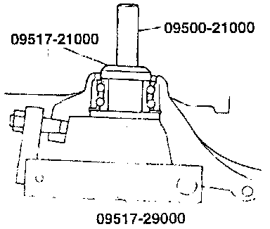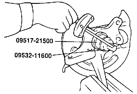 6. Install the inner race (outside) that was removed from the hub to the wheel bearing, and then use the special tool to remove the wheel bearing.