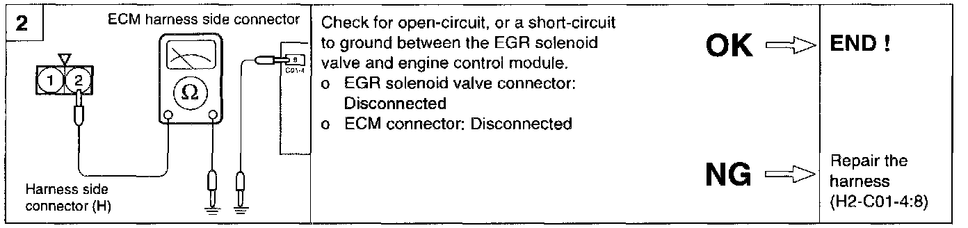 4. Apply a vacuum to check for a maintained vacuum when voltage is applied directly to the EGR solenoid valve. When the voltage is discontinued, the vacuum is released.