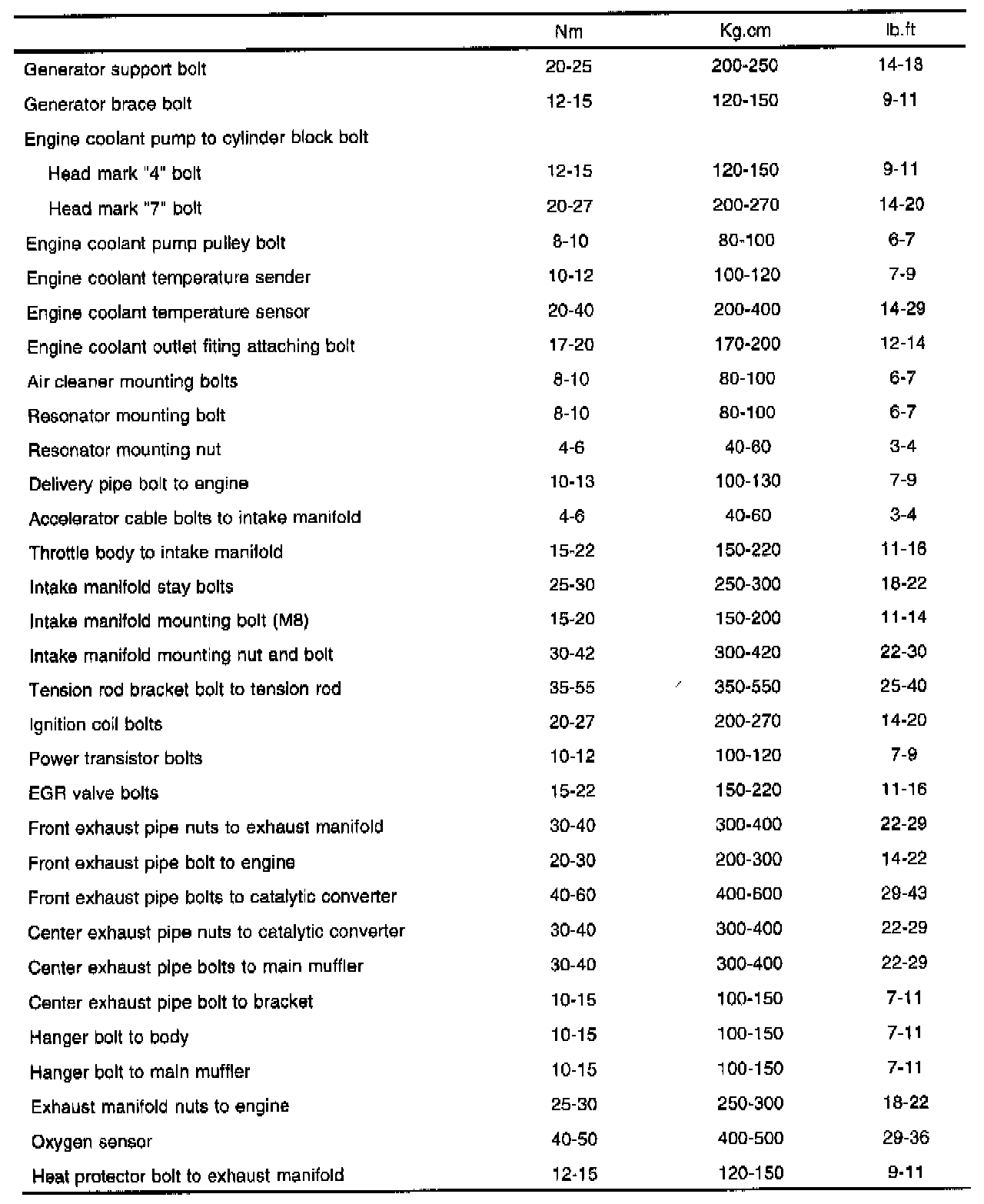General Torque Specifications