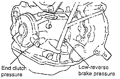 4. Attach the special oil-pressure gauge (09452 - 21500) or equivalent, and the adapter (09452 - 21002) or equivalent to each oil-pressure outlet port.When the reverse pressure is to be tested, the 3,000 kPa (400 psi) type of gauge should be used.