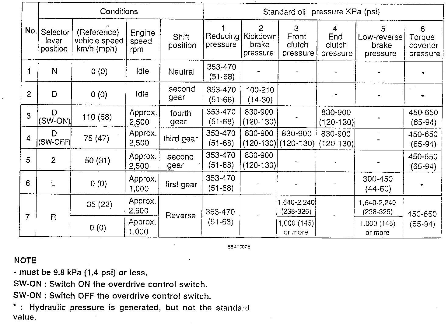 Standard Oil Pressure Table