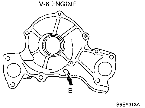 4. Check for engine coolant leakage. If engine coolant leaks from hole "A", seal unit is defective. Replace engine coolant pump assembly.