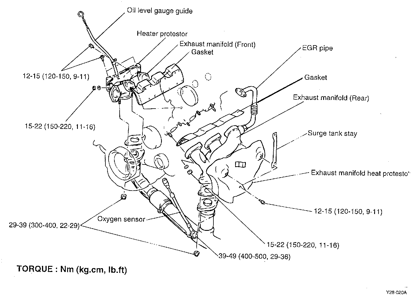 Refer to the illustration when removing the exhaust manifold.
