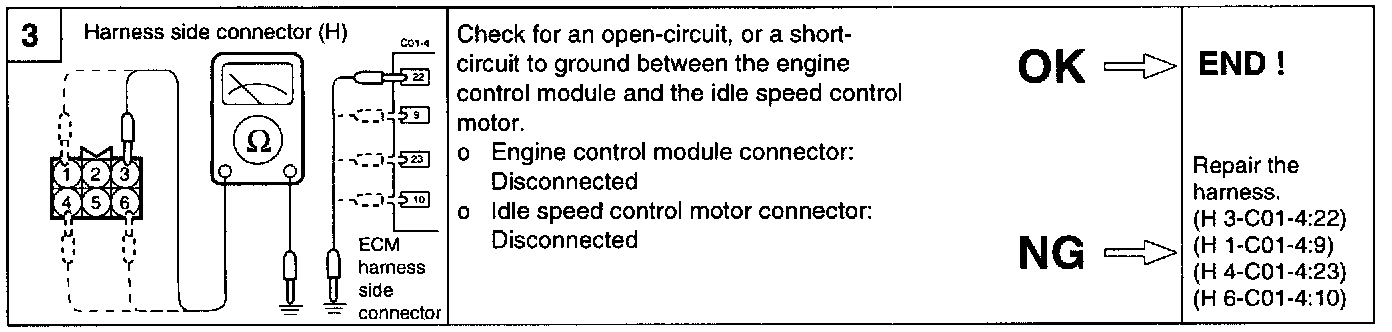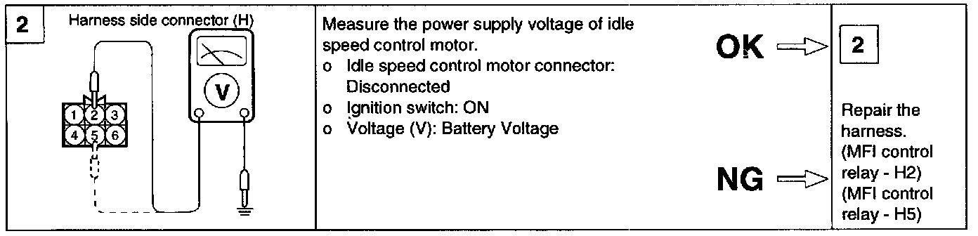 2. If the idle speed control motor is normal but the stepper motor steps are out of specification, check the following: