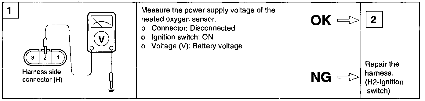 5. Check for a voltage change from about 0V to 11 V or more between terminals 1 and 3.