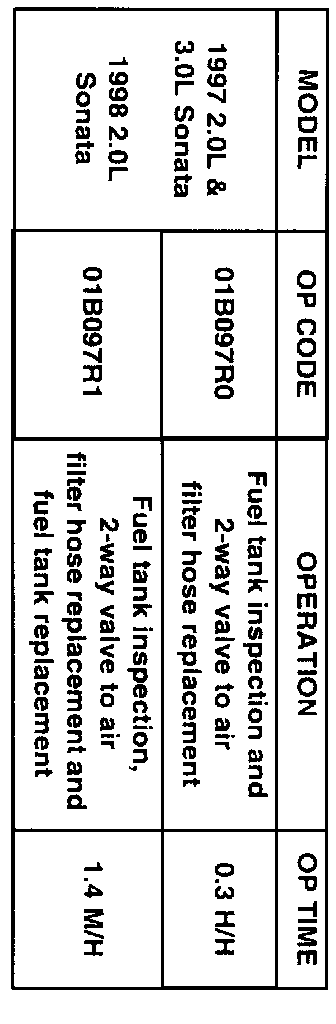 1997 SONATA; 1998 2.0L Federal Spec Only:
