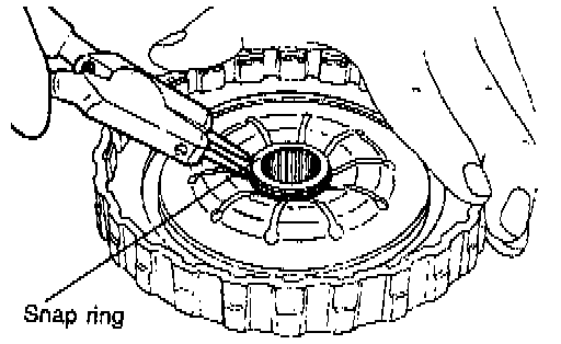 1. Remove the snap ring, and then remove the clutch reaction plate, the clutch disc, and the clutch plate. If the disc and plate are reused, be sure not to change the installation order and direction when they are disassembled.