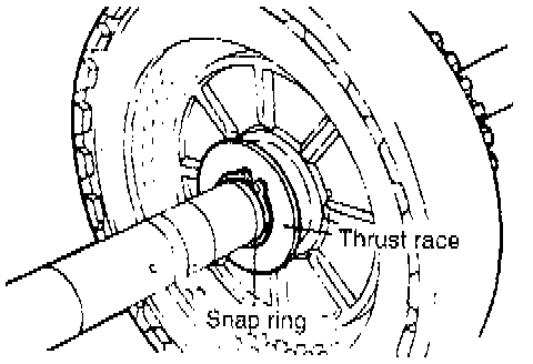 1. Remove the snap ring and then remove the thrust race.