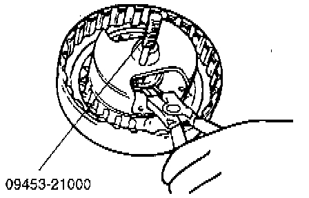 4. Compress the return spring, with special tool (09453 - 21000, 09453 - 32100) or equivalents, and install the snap ring.