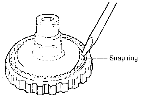 1. Remove the snap ring from the rear end of the output flange.