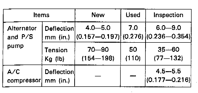 Belt Adjustment Specifications: