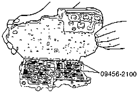 22. Install the special tool (09456 - 21000) or equivalent, then, after securing the upper separating plate and the intermediate plate by the eight installation bolts, remove the special tool.