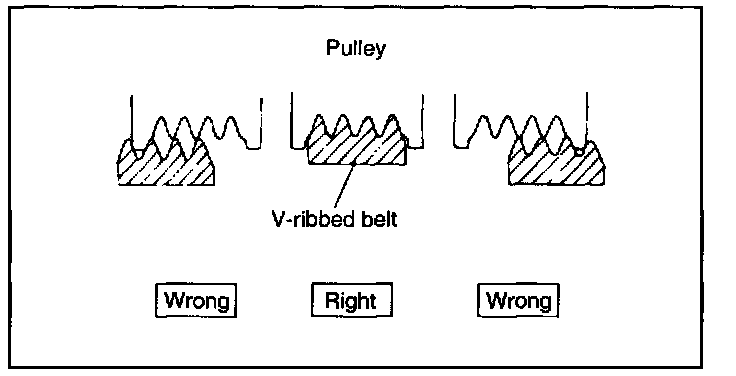 1. When installing the V-ribbed belt, check that the V-ribs are properly in alignment.