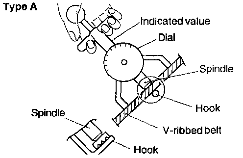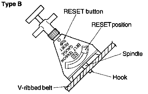 2. If the tension gauge is removed from the belt the needle will still indicate the tension. Read the tension after removing the gauge.