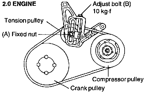 1. Loosen the tension pulley fixing bolt A.