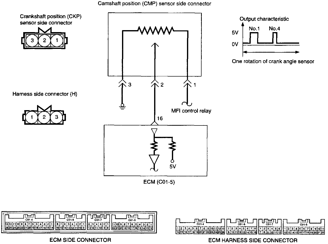 If the camshaft position sensor does not operate correctly, correct sequential injection is not made so that the engine may stall or run irregularly at idle or fail to accelerate normally.