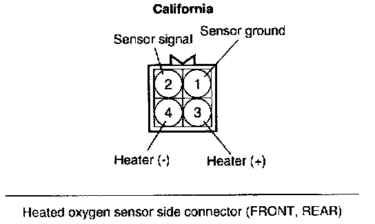 1. Disconnect the oxygen sensor connector, and measure the resistance between terminal 3 and terminal 4.