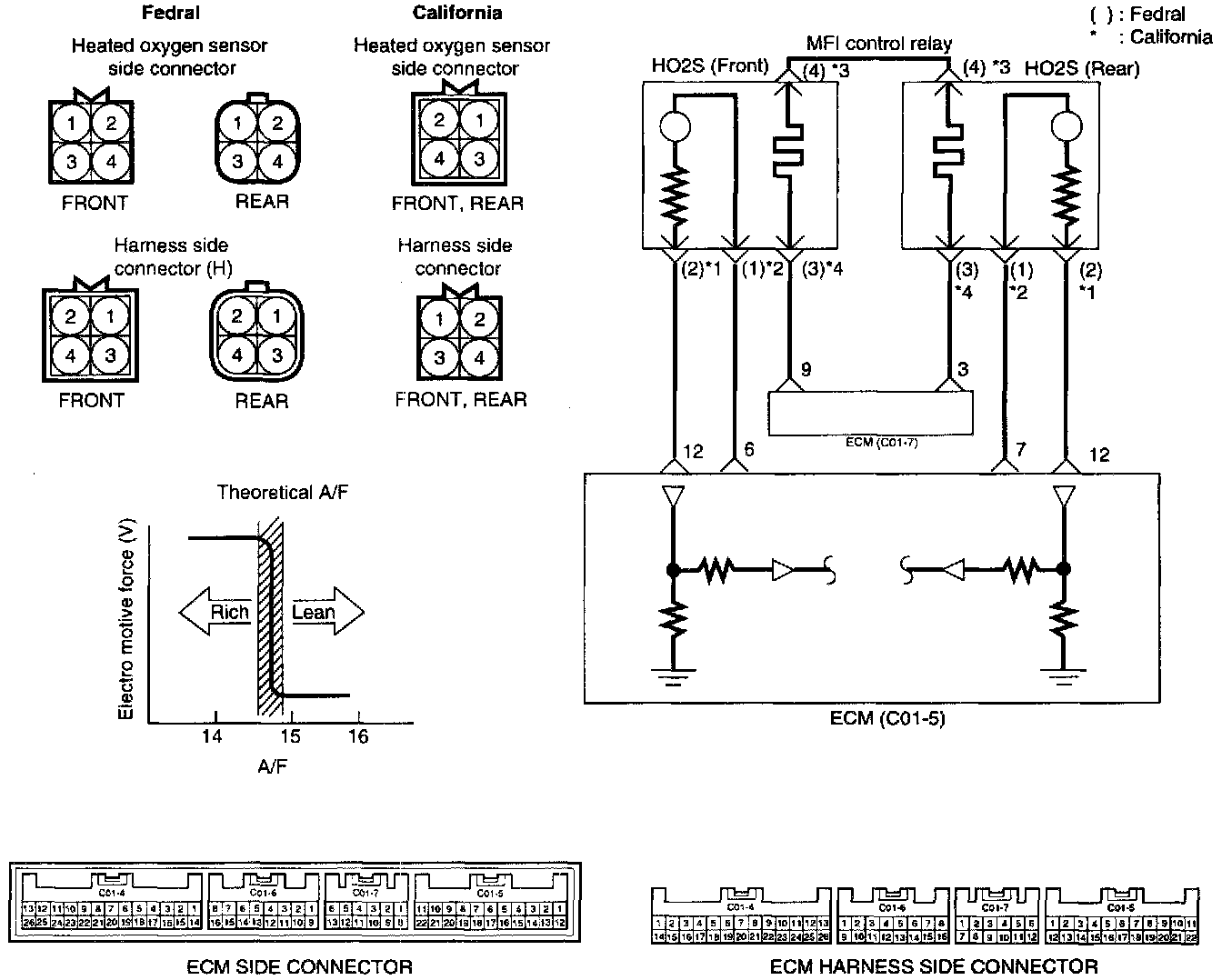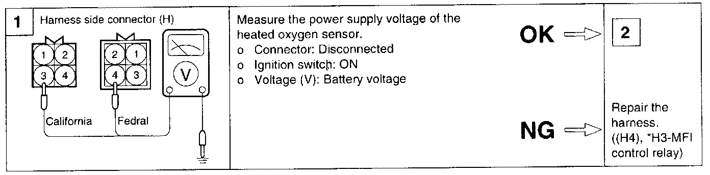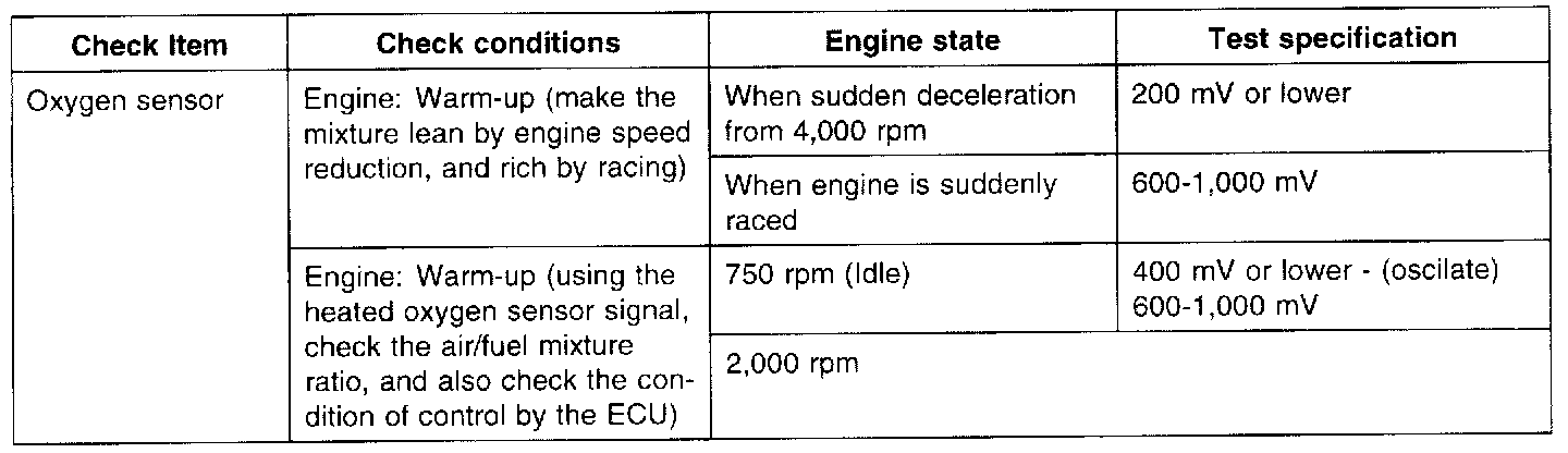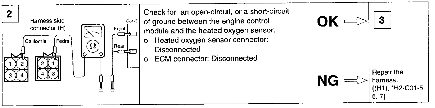 2. If the HO2S check results were normal, but the sensor output voltage is out of specification, check for the following items (related to air fuel ratio control system):