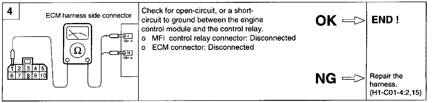 4. If one of the above is improper, replace the MFI control relay.