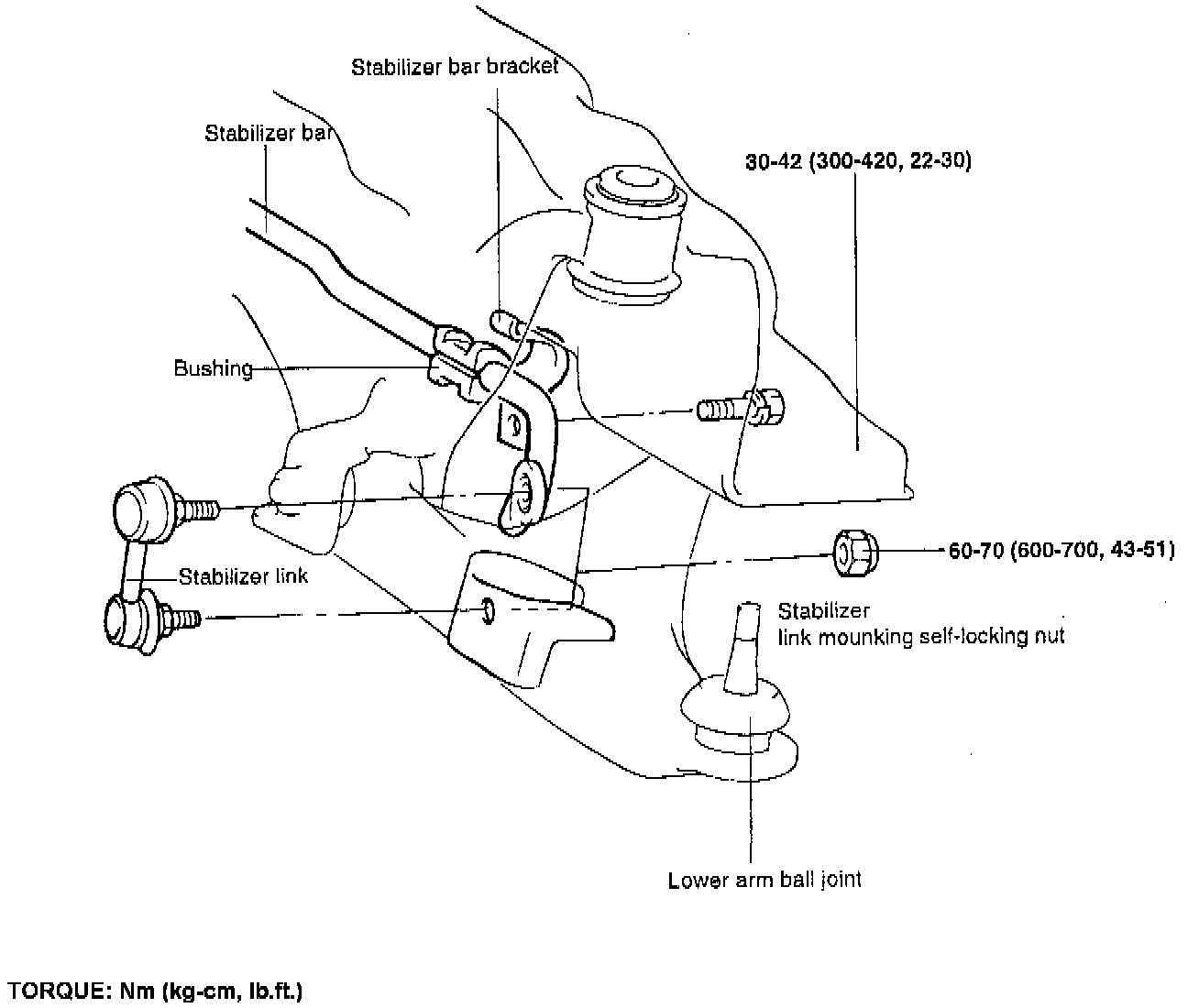 c. Mount the self-locking nut on the ball joint, and then measure the ball joint starting torque. The standard value should be 1.7-3.2 Nm (15-27 ft. lbs.).