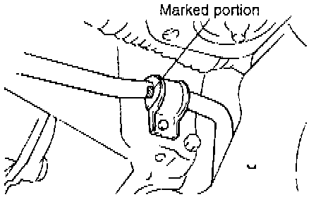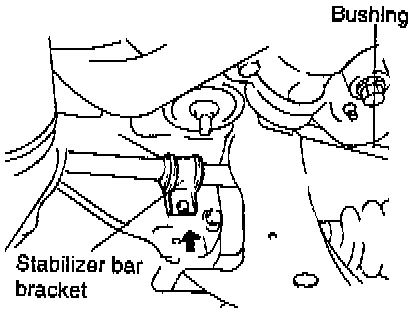 1. Lightly thread the stabilizer bar bracket bolt in, place the marked portion downward and align the edge of the marking with the edge of the bushing, then position the stabilizer, then tighten the bracket down fully.