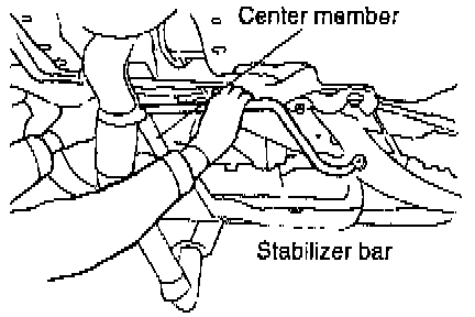 2. Lower the rear portion of the center member and remove the stabilizer bar.