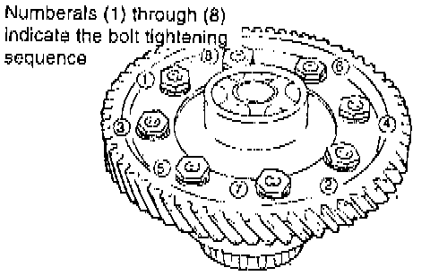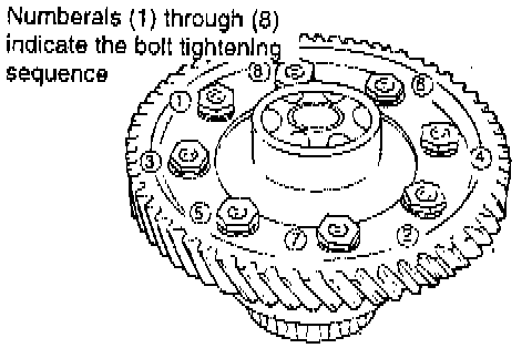 1. Remove the drive gear retaining bolts and drive gear from the differential case.